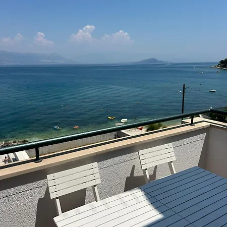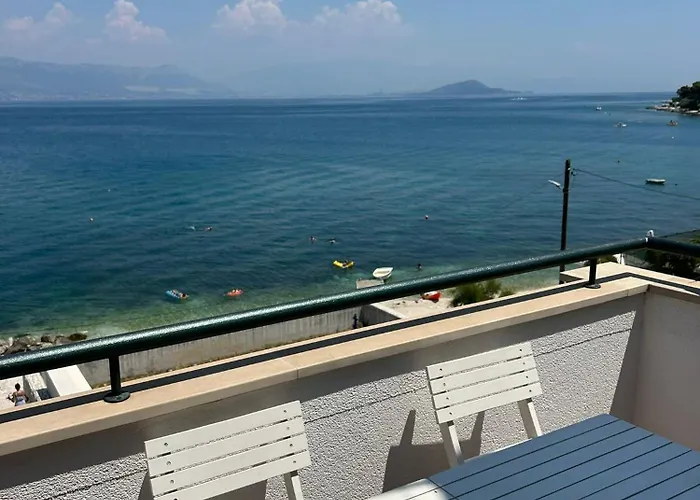 Beachfront Top Floor Apartment Trogir erbjuder vardagsrum, balkong och terrass, samt bekvämligheter som luftkonditionering. På detta boende finns ett badrum utrustat med hårtorkar, badrockar och handdukar. Du har också tillgång till en separat toalett och en dusch.